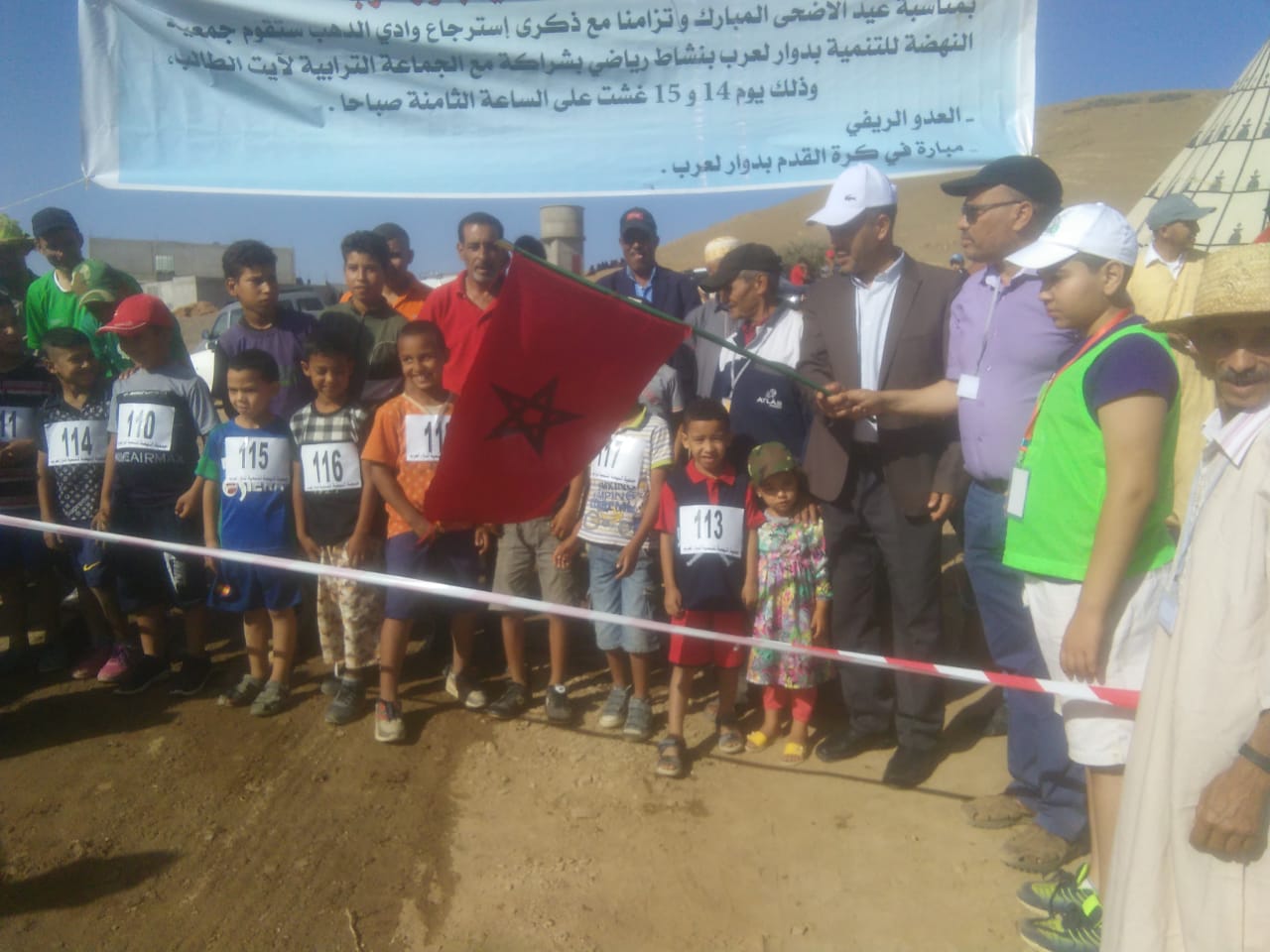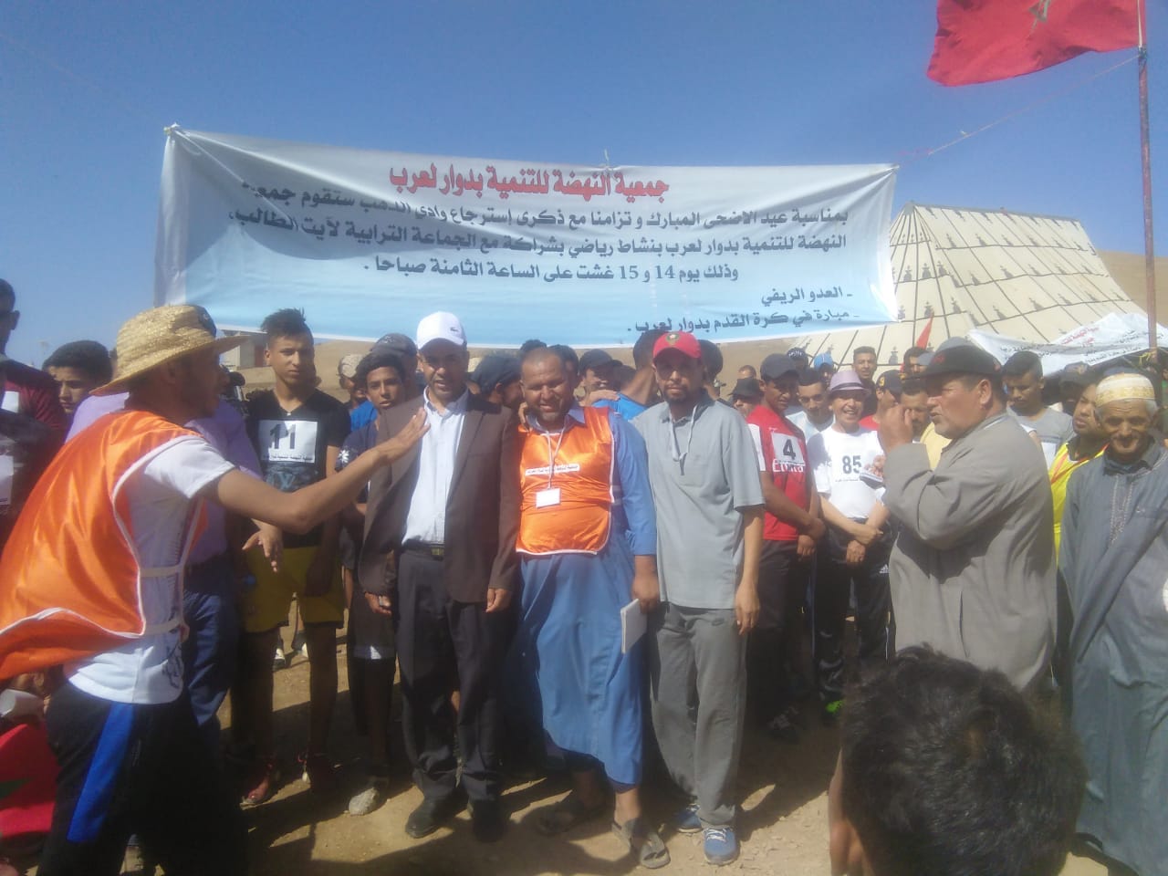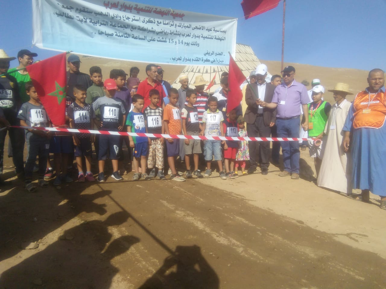 بمناسبة عيد الأضحى المبارك و تزامنا مع احتفالات الشعب المغربي بذكرى استرجاع اقليم واد الذهب و ذكرى ثورة الملك و الشعب نظمت جمعية النهضة للتنمية بدوار لعرب جماعة أيت الطالب بشراكة مع جماعة ايت الطالب أنشطة رياضية مختلفة بتاريخ 15/14 غشت الجاري ،حيث استمتع عدد من المشاركين من الاطفال و الشباب في سباق مارطون ضم جميع الفئات العمرية،بالاضافة الى تنظيم مبارة شيقة لكرة القدم بعد عملية تهييء الملعب .