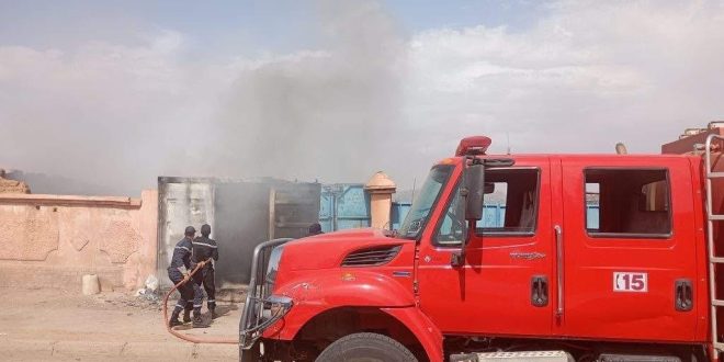 حريق ضخم يلتهم مستودعًا لشركة النظافة بمراكش