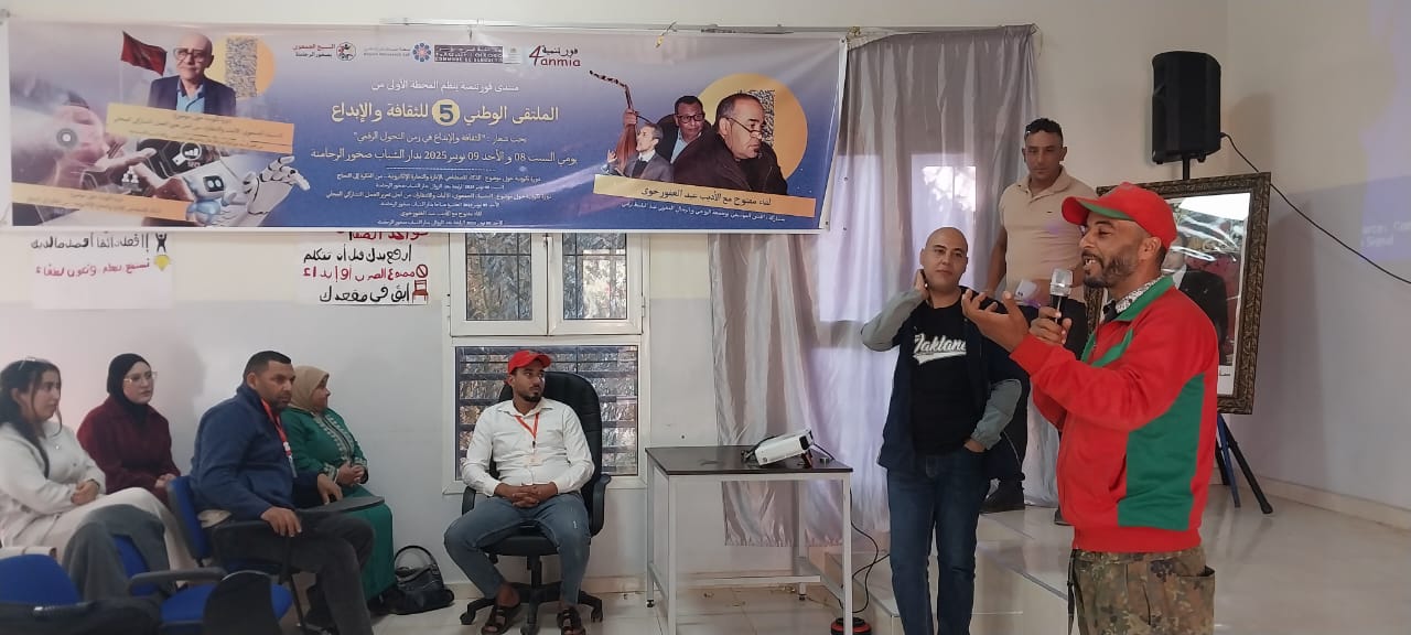 ويأتي هذا النشاط في سياق برنامج متنوع للملتقى الوطني الخامس للثقافة والإبداع، المنظم يومي 8 و9 نونبر 2025، والذي يتضمن سلسلة من الورشات والأنشطة الفكرية والفنية الرامية إلى تعزيز قيم الإبداع وترسيخ ثقافة المشاركة والابتكار لدى الشباب والفاعلين المحليين.