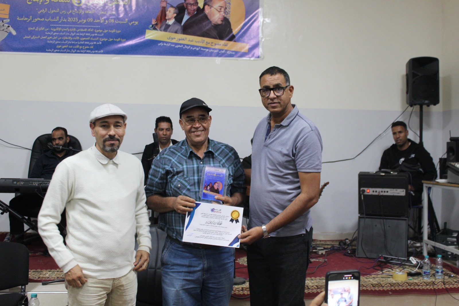 وفي الفترة المسائية، احتضن الملتقى لقاءً مفتوحاً مع الأديب عبد الغفور خوى، الذي تقاسم مع الحضور مساره الإبداعي وتجربته الأدبية، مسلطاً الضوء على دور الأدب في تنمية الوعي الثقافي والاجتماعي، ومؤكداً على مسؤولية المبدع في المساهمة في ترسيخ قيم الجمال والمعرفة.