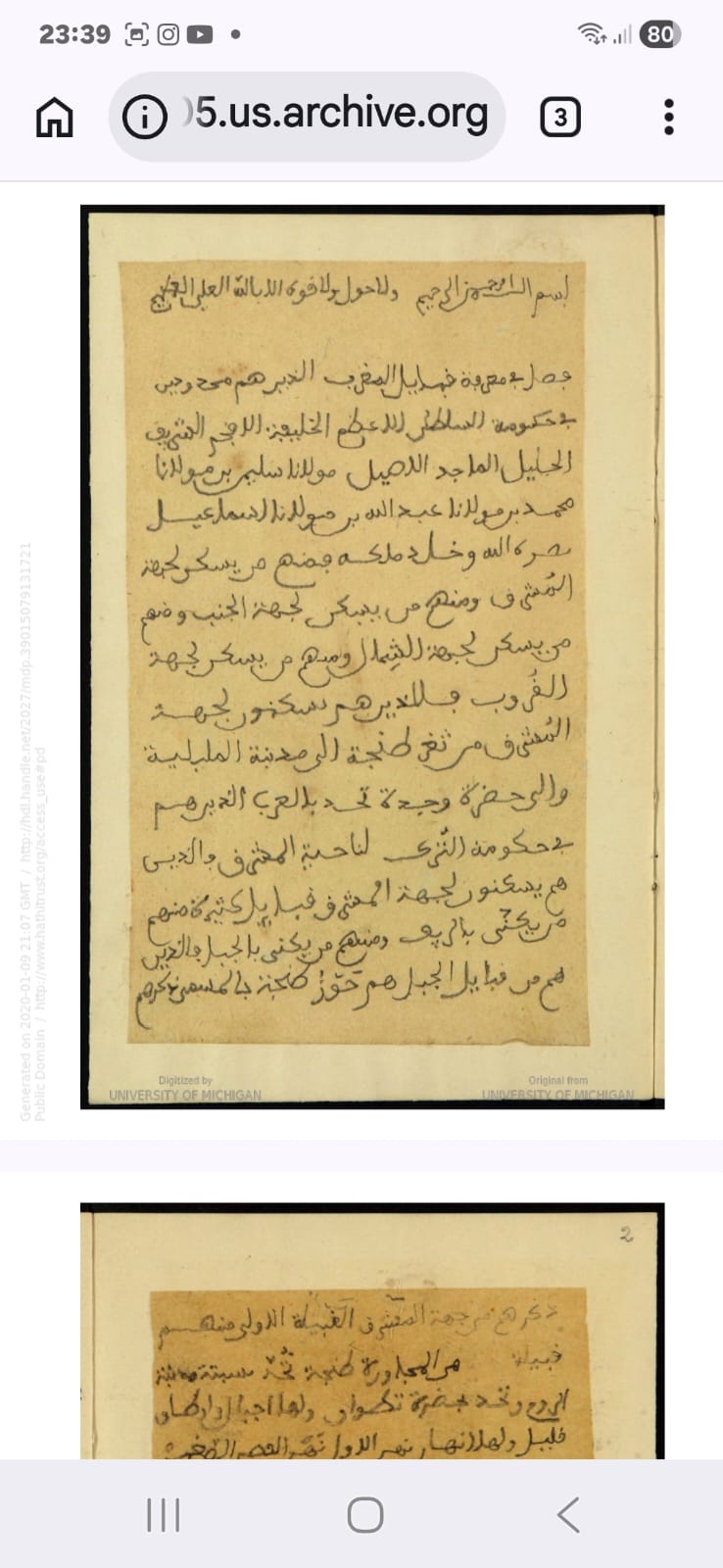 بسم الله الرحمن الرحيم ولا حول ولا قوة إلا بالله العلي العظيم ، فصل في معرفة قبائل المغرب الذين هم محدودين في حكومة السلطان الأعظم الخليفة الأفخم الشريف الجليل الماجد الأصيل مولانا سليمان بن مولانا محمد بن مولانا عبد الله بن مولانا إسماعيل نصره الله وخلد ملكه فمنهم من يسكن لجهة الجنب ومنهم من يسكن لجهة الشمال ومنهم من يسكن لجهة الغروب فالذين يسكنون لجهة المشرق من ثغر طنجة إلى مدينة مليلية والى حضرة وجدة تحد بالعرب الذين هم في حكومة الترك لناحية المشرق فالذين هم يسكنون لجهة المشرق قبائل كثيرة منهم من يكنى بالريف ومنهم من يكنى بالجبل فالذين هم من فبائل الجبل هم حوز طنجة …..