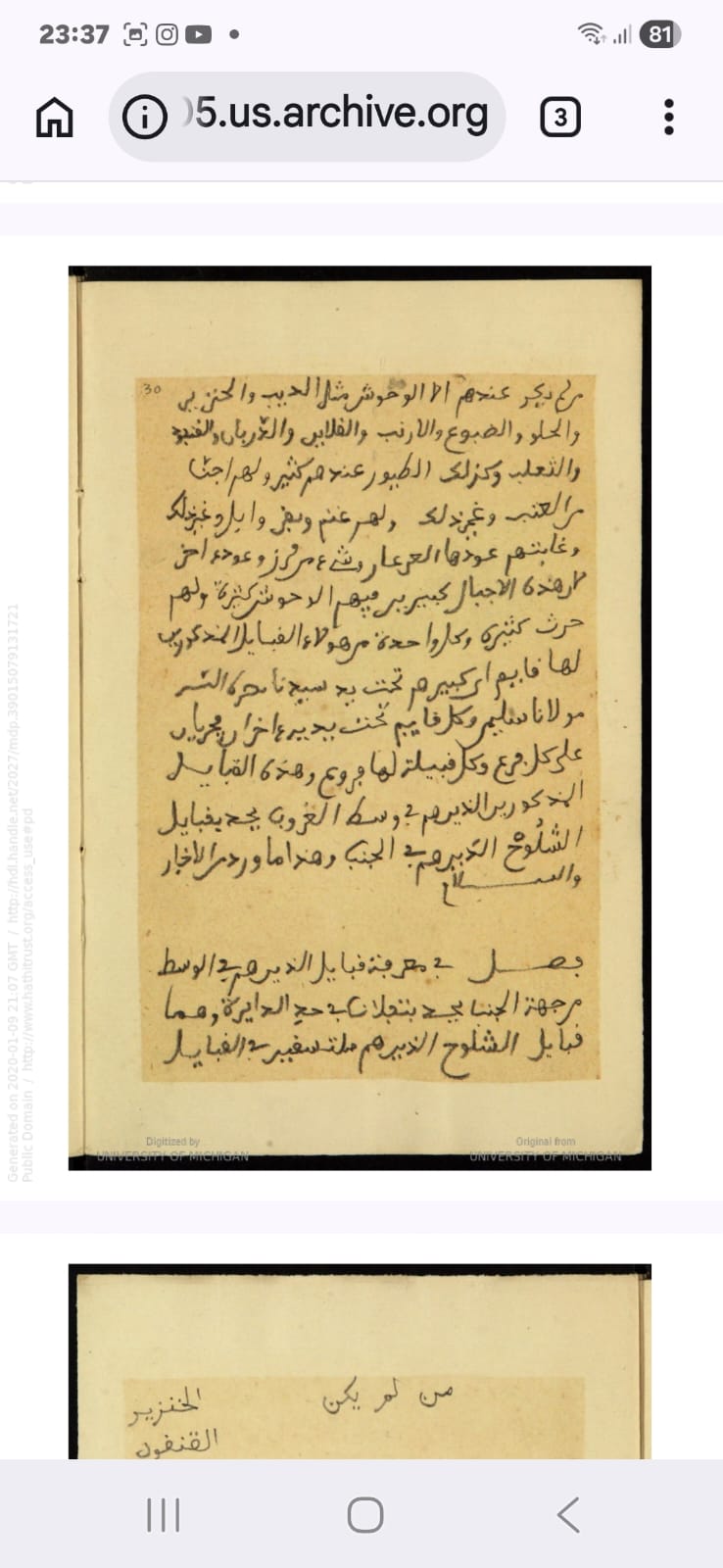 المخطوط تحدث عن الحيوانات المفترسة الموجودة في عصر المولى سليمان :