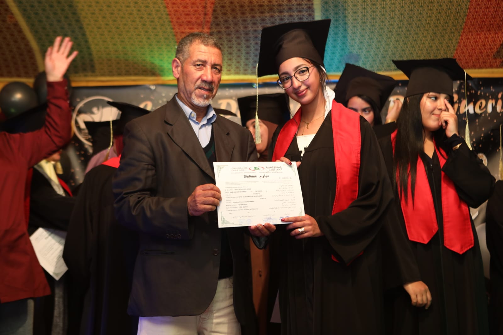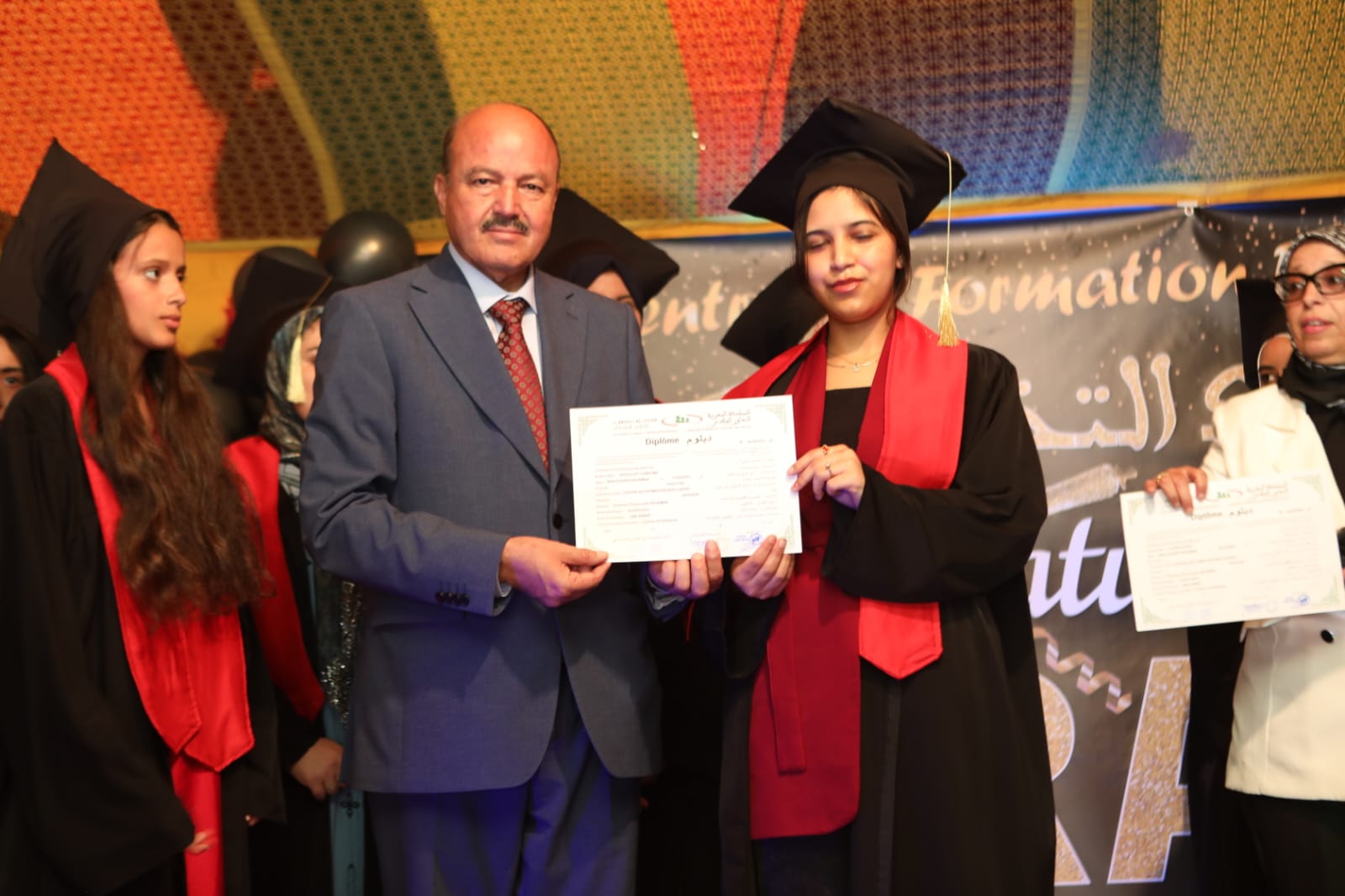 توزيع الدبلومات على خريجي مركز التكوين بابن جرير خلال حفل التخرج لسنة 2025.